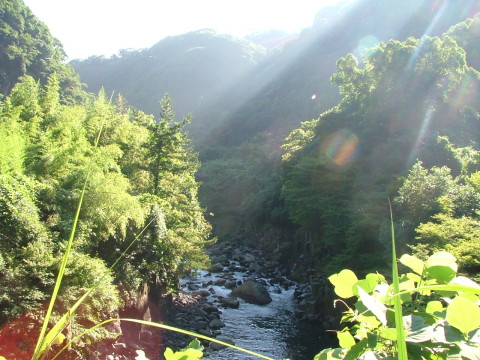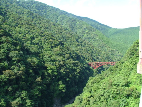 碧翠楼跡地、本当に何もない。 これは跡地上空の長陽大橋から見ている。 草に埋もれている黒川橋。 南郷の玄関、その象徴がご覧の通り。 これは上(長陽大橋)から見た黒川橋。 これは黒川橋から見た長陽大橋。 黒川に差し込む神々しい朝日。 戸下旧道の今・・・。 北向山原生林に架かる鉄橋。碧翠楼はこれを眺めるビューポイントだった。 戸下旧道に取って代わった阿蘇大橋325号線。黒川橋の遥か上をゆく。 この景色の底がダムになるという…、どうしたものか…? |