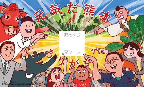 | メッセナゴヤ2016に出展します。日時・場所、その他詳細は展示会の公式ホームページをご覧下さい。 で、弊社出展物ですが「元気だ熊本おみくじマシーン」を持って行きます。マシーンの詳細は下の動画をご覧下さい。 1回100円でおみくじに挑戦頂けます。大凶を引くと帰りに事故ったり、嫁さんに逃げられたり、いわく付きのおみくじですが、あんまり気にしないで下さい。 おみくじ代の100円は景品代と運営経費に充てます。前回メーカーフェア東京では全額ボランティア団体に寄付した上、景品代も弊社とDPZで全額もちましたが、出張費・滞在費の事が頭になく、翌月のカード引き落としで大パニック。危うく路頭に迷うとこでした。 そういうわけで今回はチャリティーとは言いません。おみくじマシンを使って熊本の宣伝に寄与したいと思います。 おみくじカードはプロのイラストレーターくまみね氏の制作です。 このカードに次の確率でおみくじスタンプが押されます。 大凶 出現率2/17 *いわく付き! 凶 出現率3/17 吉 出現率3/17 中吉 出現率3/17 大吉 出現率3/17 景品 出現率2/17 *指定のブースから景品がもらえる! 阿蘇カラ 出現率1/17 *アソカラより珍品進呈! 大凶が出たら泣いて下さい。不吉な予感がします。 景品が出たら笑って下さい。指定のブースでカードと引き換えにステキな景品を差し上げます。 阿蘇カラが出たら微妙な顔をして下さい。弊社製作の珍品を差し上げます。金と時間をたっぷりかけてます。なるべく貰って下さい。 そういう事で10月26日から29日、ポートメッセ名古屋で会いましょう。 ご来場、お立ち寄り、心よりお待ち申し上げます。 |