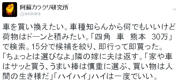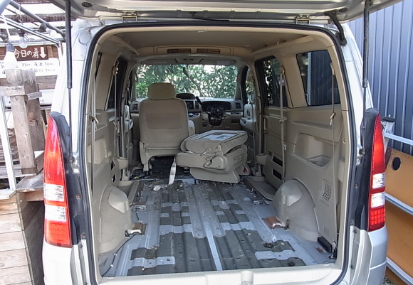 | まずは2月3日のツイート(ツイッターへの投稿の事)を見て欲しい。 こんな感じで車を買った。11万キロ走ってる日産のバネットを買った。後ろのシートがバタンと畳め、ムダなく荷物が積めた。そこが気に入った。言い方を変えれば他はどうでもよく、 「この車、健康ですか?」 それだけ聞いた。車屋さんはその質問に大きく頷き、エンジンを見せたり試乗をすすめたりした。が、それは断った。それをしたとしても私には何一つ分からなかった。興味がない事に関しては全くの無知で、車屋さんの「健康です」に全幅の信頼を寄せ、サッサと契約して帰った。 嫁は少し怒った。 「荷物も乗るけど私たち家族も乗るんだよ!」 業務車輌っぽい感じが許せないらしい。シートが薄くて尻が痛そうとか、見た目がモロ業者だから恥ずかしいとか色々言ってたけど、嫁も車に興味がないから次第に忘れ、忘れた頃に車が来た。 「こんな感じの車だった?」 「こんな感じだった気がする」 とにかく車を買い換えた。 さて、それで問題になったのが今まで乗ってた車、セレナである。これも4年前、同条件30万で買った。これは嫁が決めた。中古車屋で荷物が乗る業務車輌を物色していたら、物色の隙を狙って嫁が勝手に決めた。そういう事があったので今回は私が先手を打った。うちの家は先手を打った者勝ちという暗黙のルールがあるから油断も隙もない。 で、このセレナを下取りに出そうとしたら「一円にもならない」と言われてしまった。更に地金が安いので諸々の経費を加味するとタダで引き取るのも難しいと言われた。 「だったら廃車してセレナはお客様の宿泊部屋にしよう」という事で、記念写真を撮り、撮った後、壊す段取りに入った。 壊すのは友達を呼んだ。現在はイラストレーターだけど元バイク屋で車も詳しい何屋かよく分からん友達を呼んだ。「セレナの内装をバラバラにしてくれん?」って聞いたら、すぐに来てくれ、泊まって酒呑み、次の日バラして去ってった。 イスもハンドルも床も全部取っ払うとなかなかの広さになった。床をフローリングにして引っ付いて寝れば大人4人ぐらい生活できそうな気がした。 天井にはキャリア用のタップがあった。太陽光パネルを貼ってバッテリーを積めば独立した文明空間ができあがるだろう。 「文明的だけど雨の日は蓄電残量に怯えて暮らす!晴れを祈って文明の始動を待つ!夜はギリギリの文明消費で耐える!地球に平伏す文明生活、教育に打って付け、最高じゃないか!」 客間の予定でスタートしたセレナ分解が何となく子供部屋の雰囲気になってきた。 あわよくばこういうので家族の感じを確かめつつ、近い将来、文明命綱の一つ、電力会社を切れたらいい。 私はちょくちょく小さな理想を嫁に語っていて、遠くない将来、50代後半ぐらいには自由人になりたいと熱望している。芯から自由人になるためには不動産と文明を一つずつ丁寧に剥がしていく作業があって、不動産はタイヤに乗れば動産になるが、文明は心に寄るところが大なので簡単には剥がせない。当たり前の根は心に絡むから「それはムリ!」ってすぐ言っちゃう。だからちっとも変わらない。 「えー電気ガス水道だけは切り離すのムリー」 「不便な生活もたまにはいいよね」 「夜が長くてありがたいよね」 「水や太陽って素晴らしいね」 「生きてるって素晴らしい!私あなたと一緒に自由の旅に出る!」 干支一周ぐらいの期間で私と嫁の当たり前が変わり、自由の船出を迎えないかと期待している。むろん私は無類の寂しがりなので一人は嫌。ゆえ、その事に関してのみ投資を惜しまぬ所存であった。 そういうわけでセレナ部屋を作ると決めた。決めたけれど何をやるにも元手がいるのでまずは働かねばならない。空っぽのセレナを見ちゃうといつまでも働かないので、まずは見ない事にし、急いでバラした友人には悪いが数ヶ月放置する事に決めた。 と、その前に大量のゴミを片付けねばならなかった。バラして分かったが隠し切れないゴミがたくさん出た。クッションのスポンジは燃えるゴミで出した。他に内装パネルのプラスチックゴミ、これは毎日のゴミ出しで少しずつ出そうと決めた。鉄屑は地金屋が無料で持って行くので庭先に放置した。困ったのは中途半端で巨大な座席。セレナは8人乗りだから長イスが一つ、中間席が二つ、他、運転席、助手席、計5点、この保管場所に困った。 「どうしよう?」 捨てるにはカネ取られるし、まぁそれはいいとしても、状態がいいものを捨てるのはモノづくり屋としての矜持が許さぬ。 とりあえず敬意を示そう。私の尻を温めて続けた運手席を自宅のソファーにした。 リクライニングもドリンクホルダーも肘置きも付いて酒を呑むのに打って付け。実に気分がよかった。が、嫁に不評で「どうせ場所を取るなら二人用のソファーがいい」と苦情が出た。よって長イスに土台を付けた。土台を付けながら、 「これはアジャスタで固定するよりタイヤの方がおも
