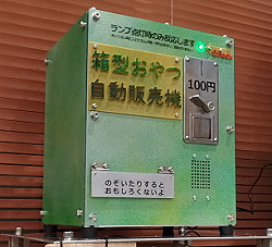 (415)3種おみくじ販売機 *阿蘇下田城駅に設置中 おみくじ小屋に来られた方が「福岡からわざわざ来たのに休みかよ」電話で苦情を言われました。僕は感動しました。こんな小屋を、こんな小屋なのに、そこまで楽しみにしてくれた人がいるなんて。休みが多いというのは今後も変わらないので、せめて休みでもおみくじが引けるよう屋外設置の販売機を作りました。どうぞ安心してお越し下さい。 |