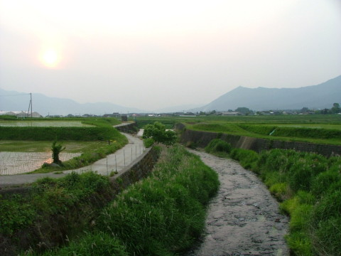 | 第28話 道について(2008年5月) 手元に明治35年の地図がある。地元の教育委員会に頂いたもので、縮尺は1/50000、阿蘇南郷谷の地図である。 今、私のマイブームはこれに載っている古道を探す事で、現在の地図とこの地図を照らし合わせ、事前に検討を重ねた上で現地を走っている。走る手段はカブ50である。道路交通法に引っかかるかもしれないが、スピードメーターのところにバインダーを括り付け、地図を見ながら走り、地蔵や石碑、神社仏閣、風景などを書き込みながら超低速にて田舎道を疾駆している。首にはカメラをぶら下げて格好はジャージ、怪しい事は自ら分かっているが、地元の人から見ても怪しいらしく、すっかり痛い目線に慣れてしまった。昨日は清水峠という外輪山を越える峠を走ったのだが、その途中の山寺で、 「誰じゃっ! 動くなっ! 何もんだっ!」 棒を持った爺様に怒鳴られてしまった。それぐらい怪しく目立つらしい。 私が道に惹かれ始めたのは嫁と付き合い始めた頃だから約十年前である。当時、埼玉は入間というところに住んでおり、そこを中心に飯能秩父方面、狭山湖周辺をよく攻めた。その頃から「道の味」というものを考え始め、何となく旅のコースに古道を選ぶようになった。 旅は十八の頃から始めている。高校三年の時、熊本から大阪まで自転車の旅に出た。それから旅にハマり、九州一周、四国一周、日本縦断をした。いずれも自転車であるが、一般国道は危ない・汚れる・気分が悪い、おまけに思い出が残らないという事に気付き、何となくコースとして裏道を選び始めた。裏道には歴史が点在する。そうなると歴史に興味を持ち始めた。歴史に興味を持ち始めると古道を歩きたくなる。そういう運びで次女が生まれる時、肥後から江戸まで参勤交代の道を歩いた。以後、その嗜好を保ったまま今日に至り、冒頭のような事を趣味でやっている。 昨日、人通りが全くない清水峠の頂上で、 (なぜ、こんな事をしてるのか? 何が楽しいのか?) その事を考えてみた。やらねばならない仕事もあり、翌日の出張、その準備もしなければならない。が、ムズムズし、何となく飛び出した。長い時間考えた。が、よく分からない。 「何となく」 その一言に尽きた。写真家であれば自然の変調を敏感に捉え、すぐさま山に登る。近所にプロの写真家が多いため、思わぬ場所で近所の人と出くわした事が何度かある。阿蘇には生物学者も多く、植物や鳥を見付けるために出て来られた方ともよく会う。林業や農業の方も目的を持って山を登られる。皆、人が寄らないそこへゆくためには何か目的を持っており、私だけが漠然としていた。 「古い道が好きで調べてます」 目的を問われそう応えたが、果たしてそれが本当の目的だろうか。 登山家は山へ登る理由を「そこに山があるから」と言う。更なる高見を目指す事が冒険家には必須らしいが、私にその匂いは薄い。現にバイクで登っており、基本的に辛い事が嫌いである。この証拠として、学生時代ホッピングによる九州横断を試みたが三日目で断念し、それからホッピングに触れていない。 (はて、なぜだろう?) よく分からないうちに下山し、峠道は市下という神社へ出た。この辺りを南阿蘇村両併という。鳥居の中央・神額には「八面社」と書かれており、神社名(市下)と違う。地元の呼称と神社名が違うのはよくある事で、八面社とは地元の呼び名であろうが根子岳好きの私としては何となく気になる。 根子岳の別名は七面山で、どこから見ても同じに見えるというのがその由来で、この神社から根子岳はバッチリ見える。が、七面山という割には姿かたちを変えるのが根子岳であって、阿蘇谷の人と南郷谷の人が「どっちから見た根子岳がカッコいい」その事で喧嘩しているところを私は何度も見た。 で、この市下神社は周りに何もない。水田がこの神社を取り囲んでおり、四方八方どこからも良く見え、こんもりとした具合が何とも言えずカッコいい。その事を受け、「どこから見ても本当にカッコいい神社」という事で七面に一を足し、八面社と呼んだのではなかろうか。 そのような事を考えながら市下神社を眺めているとアッという間に時間が過ぎた。その時間の過ぎっぷりから、私はこういう考察が好きなのだと改めて感じたわけだが、この空想を得るためにはある程度リアルな考証がいる。見て感じるという手間暇のいる考証である。 古道には確かに人が歩いた歴史がある。そして確かな物語を長い時間展開した重みがある。この道が神社仏閣を繋ぎ、集落を繋ぎ、人間を繋ぎ、今を紡ぎ出している。 過去の空想は数学でいう証明みたいなもので、ある結論へ持ってゆくための数遊びである。やり方は無限にあるが結論が見えているという点、身近で面白く、短距離型の理数向きである。 ちなみに私はSFやファンタジーが書けない。文章学校時代SFにチャレンジした事があるが、小学生でも書かないような笑える駄作に仕上がった。SF