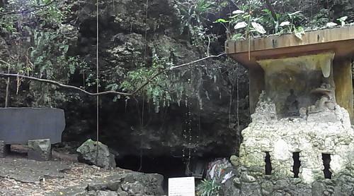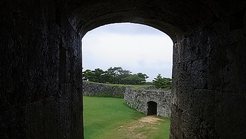 | 第125話 雨のなかがみ放浪記2(2017年1月) 恩納村から国道58号線を南へゆく。この道は沖縄の1号線で戦後アメリカが作った。 「古い道、琉球の道はなかろうか?」 古道好きとしては古い道を歩きたい。幸い雨もやんでいたので国道を離れた。 小さな集落で道を聞いた。米寿を優に越えてそうなおじいと会った。おじい何かを言った。が、何を言ってるのか全く分からなかった。 ニッポンの言葉は戦後急激に均された。薩摩や琉球を歩けば特に分かる。大正生まれの方言は異国の言葉で封建の名残があった。 分からないのが嬉しかった。おじいの言葉を黙って聞いた。どうやら道はあるっぽかった。車を停めて、おじいの指差す方向へ歩いた。が、分からなかった。 琉球の道は確かにおじいの指す方向にあるらしい。今これを書きつつ古地図で調べるに国頭方西海道(くにがみほうせいかいどう)という400年前の道が近くを走っていて、指差す方向に山田谷川の石矼(いしばし)という古い橋があった。 残念。地図を見ると一本道。なぜ行けなかったのか分からぬが、そういう事は古道巡りをしてるとよくある。 「道?やぶ?」 古道巡りはその線引きがあいまいで、勇気を出して踏み込むと古い肥溜めに落ちたりする。 国道58号線に戻って読谷村に入った。世界遺産の座喜味グスクがあった。 宿に置いてあった旅の案内(昭和55年発刊)を見ていたら護佐丸(ごさまる)という人の特集記事があって「琉球最高の建築家」と書いてあった。この人が作ったのが座喜味グスクらしい。 「加藤清正と熊本城みたいなものか」 そう思うと素通りできず立ち寄った。が、またも雨に打たれた。傘は車に置いてきた。雨から逃げるグスク散策となった。 座喜味グスクはアーチ門が素晴らしい。ちょっと動いちゃ雨宿り、また動いちゃ雨宿り、門から門へ飛び移り、護佐丸・石の凄味を内から外からじっくり眺めた。 築城の名手は石が好きでたまらないらしい。街づくりの名手は水が好きでたまらないらしい。今が伝える名物は好きが高じた結晶で「好き」と「数寄」を極めねば後世に残らぬ事がよく分かった。 先に進む。 ガマに寄りたいというのが旅の希望だった。 沖縄はサンゴの島だから雨の浸食で数え切れない洞窟・ガマがある。ガマの利用法は時々刻々変化して、風葬時代は一家の墓になり、戦時は防空壕になった。 大戦末期、ガマでの集団自決は有名で、私も映画で泣かされた一人。全部見たいとは言わぬが、その内一つでも見れたらいいなと思っていた。 近くにチビチリと名の付くガマがあった。 「雨のガマ見物、最高だ」 そう思って車を走らせ、人っ子一人いない静かなガマへ下りた。 このガマは観光地になってるらしい。案内板もあり駐車場もあって、ガマ周辺も一風変わった宗教臭が満ちていた。 せっかく来たのでガマへ入って中を見ようと思った。が、入口に立て看板があって強く自省を促していた。 【見学者及びボランティアでの案内者へ】 これから先は墓となっていますので立ち入りを禁止します。ガマの中には私たち肉親の骨が多数残っています。皆様がガマに入って私たちの肉親を踏み潰している事を私たちは我慢できません。 猛烈に反省した。「もっともだ」と唸った。 ここは墓。墓が先で防空壕が後、悲劇も後、観光マップに載ったのも後。我が身に置き換え、怒りと反省で体が熱くなった。 「我家の墓に知らない人がジャンジャン来る!先祖の骨を踏み潰す!あー腹立つ!この看板の言う事一々もっとも!」 全速力でチビチリガマを去った。 寄り道を続ける。 沖縄本島の一番尖ったところを残波岬という。鳥のクチバシみたいに尖ってて、何となくヤンバルクイナっぽいなと旅の前から思ってた。 形が気に入り岬に寄った。岬に近付くとリゾート感がドッと押し寄せ、カップルとアメリカ人が一気に増えた。沖縄リゾートは海沿いに巨大な何かを作る事から始まる。巨大シーサーでもあるんじゃないかと思っていたら案の定あった。 リゾート及び観光の気配は岬の手前で終わった。岬周辺は灯台があるだけ、他は沖縄の地肌(隆起サンゴ礁)が広がっていて、なかなか見応えがあった。 それにしても隆起サンゴ礁は歩き辛い。島ぞうりに適さず擦り傷だらけになった。 そんな私をアメリカの軍人集団が恐ろしいスピードで追い越していった。さすが国費で鍛えているだけあって足場の悪さをものともせず、ピョンピョン跳んで去ってった。日本人として負けるわけにはいかなかった。一人の女性軍人に追いついた。他は行ってしまった。何人か日本人がいた。その日本人が見つめる中、女性軍人は海に向かって国歌を独唱した。 「アメリカ人はどこへ行ってもアメリカだ」 ペースを崩さぬ凛とした異国の女性にいささか嫉妬を覚えた。例えば私がアメリカで、異国の海岸で、異国の民に見つめられ君が代を熱唱できるか。できない。国歌のノリもあるけれど、それ以上に人間の質が違う気がした。 残波岬から海岸線を南へ走