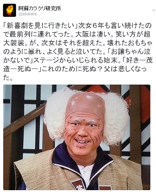 | 第126話 八恵とふたりで(2017年2月) 三歳七ヶ月の娘と二人旅に出るサンナナ旅行を三人娘全員とやった。自慢じゃないが私は一度もオムツを替えた事がなく、この旅が父親への登竜門で、この旅を経て何となく父親になった気がする。 それから娘たちは勝手に成長し、飯さえ食わせりゃそれなりに大きくなった。 三年前、長女が小学校を卒業した。中学生は四捨五入すれば大人。親と子って感じより年上と年下って感じが望ましい。 「よし!チャイルド卒業記念に大人の旅をさせよう!」 小学生までは体力の問題で一緒の旅を控えていたが中学直前となれば行けるだろう。私の旅はよく歩く。卒業旅行として「ばあちゃんちまで古い道を歩こう」と提案した。凡そ60キロを一泊二日で歩く。ちょうどいい距離だと思った。長女は乗った。「行く」と言った。が、直前でゴネ始め南阿蘇一周旅行になった。 次女は先手を打った。 「吉本新喜劇に連れてってくれるなら歩く」 六年ぐらい「連れてって」と言い続けているそれを交換条件に出してきた。 「よし分かった!」 七回忌を迎える従兄弟の墓参りもあったので、卒業にはちょっと早いけれど2月11日から13日を次女卒業旅行の日と決めた。 「文句言わず絶対歩け」 「はーい」 次女は人一倍根性がない。更に超テキトーで約束を守らない。念を押して旅に出た。 次女の名は八恵(やえ)という。 産まれて三日目にヒルシュスプルング病という腸の病気が見付かり、生後一週間で人工肛門が付いた。8月8日8時産まれ。末広がりの人生を祈って八恵と名付けた。 人工肛門は一年で取れた。異常な腸を切り取って繋げ、普通の生活ができるようになった。が、人より腸が短いため吸収が悪いらしい。それが分かるまで数年かかった。八恵は人より多く飯を食った。食ったらすぐにトイレに行った。倍かけた食費は八恵の体を上から下へ真っ直ぐ流れた。絵に描いたようなムダだった。 「こいつアメ車か?燃費悪過ぎ!」 親は慌てた。医者に聞いた。 「手術の影響でしょう」 食っても食っても八恵だけ太らず、何だか残念な感じにひょろひょろ縦ばかり育った。 さて2月11日、二人旅に出た。 行きは飛行機、帰りは新幹線で移動した。理由はない。予算の都合でそうなった。 行きの飛行機はプロペラ機だった。 父は喜び娘はゴネた。 「ケチったろ?」 「小さいモノがケチならば今のスマホはどうだ?昔の電話はでかいぞ!今プロペラ機に乗れるなんてリッチだ!」 そういう事を叫んでいたら初老のおばさんに褒められた。 「大事な事よ、もっと言いなさい」 幸先よいスタートになった。せっかく二人で出るのだから色んな事を伝えたい。八恵は「食い倒れ、お笑い、USJ」と浮かれているが、むろんそういうのはちょとしか触れるつもりはない。父はテーマパークと観光施設が大嫌い。観光クソ喰らえ大使を自任している。 「人にテーマを与えてもらうから人間の遊びがバカになる!テーマは自分で探せ!探すために歩け!体を使って探すのだ!」 「ハイハイ」 「ハイは一回!」 全く沁みない。沁みなくて当然。言葉は無意味。こういうのは父の背中で気付いてもらわなくちゃいけない。だから歩く。二人で歩く。 飛行機は定刻伊丹空港に着いた。着いた瞬間、歩き始めた。 「さあ旅の始まりだ」 この旅の一番の目的は卒業旅行だが、二番目の目的は従兄弟の墓参りにあった。四年前一度、出張ついでに寄った。それ以来の訪問だから記憶の場所が怪しいけれど何とかなるだろう、そういう感じで歩き始めた。 八恵は空港からタクシーもしくは電車で行くと思っていたらしい。少しゴネた。 「甘い!道中おもしろい事を探せ!」 住宅街と豊中駅を突っ切って記憶の墓を目指した。 八恵はゴネつつ諦め、黙って私の後ろを付いてきた。 何度か道を間違えた。長女と三女は道を間違えるとやたら不安になってギャーギャー騒ぐ。次女の八恵はそれがなかった。 「多少遠回りになっても引き返さない」 父の美学を伝えると「やるじゃん」と言い、ほんの数歩戻ったら「戻るのか?戻っていいのか?」真顔で父に問うてきた。意味の分からぬところがマジメで、そういう面倒臭いところが嫁似だと思った。 墓地に着いた。着いた瞬間、雪が舞い始めた。 雪の墓地をぐるぐる回った。回って回って無理だと知った。 丘全体が墓地で、この中からお目当ての一つを探すのは極めて困難。二人がかりで記憶のエリアをしらみつぶしに歩いたけれど全く見付からなかった。 雪はやまなかった。私も八恵も疲れて飽きた。この辺りに七回忌の従兄弟がいるのは間違いないので座って一緒に酒を呑み、墓参り終了にしようと思った。 手頃な階段に座った。焼酎を開けた。雪がやんだ。 「ん?」 従兄弟の姓が焼酎の先に見えた。 柵を越えてダッシュした。墓石の裏を見た。従兄弟の名が彫ってあった。メチャクチャ興奮した。 「八恵!こんな事ってあるかー?」 八恵がいてくれてよかった。この興奮を伝える人間がいた。 「あきらめ