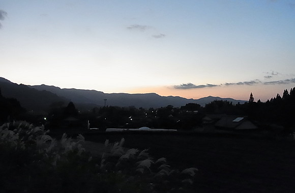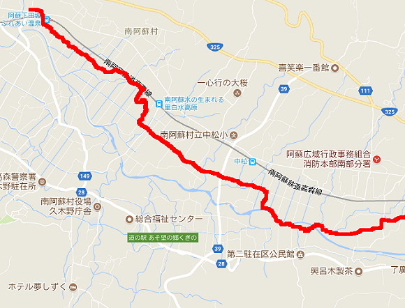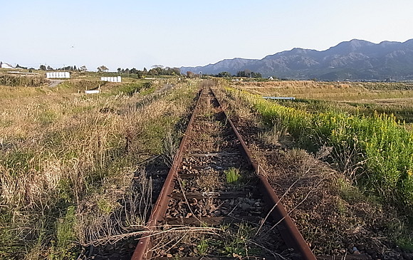 | 第132話 鍋の底にいるんだ(2017年11月) 当たり前の事を書く。 南阿蘇という場所は世界一のカルデラの中にある。マグマをボコボコ噴出し、地面の下が空っぽになり、ドーンと沈んで鍋みたいな地形になった。鍋のふちが外輪山で、その鍋は流行りの仕切り鍋みたいに中央ちょっと南側で仕切られていて、その仕切りが五岳を擁する阿蘇山。で、ふちの薄いところが立野の火口瀬。古い時代に亀裂が入り、鍋の水が流れ、阿蘇谷と南郷谷ができた。 くだらぬ絵を描きながら、 「ああ僕は鍋の底にいる!」 分かりきった事だが今更ながらそう思った。と、いうのも、朝方庭で背伸びをしていたら東の空の外輪のふちが明るくなった。すると(当たり前の事だが)太陽と反対側の外輪が明るくなり、太陽を向いてる僕の背中からお日様が迫り、僕に達して朝日が見えた。 何度も言う。これは物理現象で当たり前の事だが、水平線の日なたは前から来る。が、鍋の底の日なたは後ろから僕を追い越し現れ、それから昇って鍋全体を照らしてゆく。 「うぉー!」 こんな事に理系の中年が感動したなんて恥ずかしくて言えない。が、書く事はやぶさかではない気がする。意外とテキトーに生きてる僕みたいな阿蘇人がいるかもしれない。 そんな中、呑み会に誘われた。「ボージョレをバカにする会」らしい。意味不明だ。説明を聞いた。飲食店の経営者が集まってボージョレヌーボー解禁日にボージョレ以外のワインを持ち寄りボージョレをバカにするらしい。うん、説明聞いても意味不明だ。意味不明ゆえ参加の意を表明した。そして、その場に歩いて行こうと決めた。 呑み会の場所は高森町。同じ南郷谷だけど、ほぼ端から端なので歩けば3時間ぐらいかかる。開始時間は19時。歩きながら夕暮れを迎える事ができる。東へ歩くから僕の背中から夕闇迫るに違いない。闇に追われて酒場を目指す。目指した先が意味不明、ボージョレをバカにする会。鍋の底を知るに打って付けのウォーキングであった。 11月15日15時30分、やりかけの仕事を放り投げ家を出た。 地図は必要ない。鍋の底だから仕切り板の阿蘇五岳と鍋のふちの外輪山が丸見えで、明るい内は迷う心配がない。東へ東へ歩いた。 最短ルートは旧国道を真っ直ぐ行くルートだが、急いでないし変な道の方が楽しいから田んぼの畦道を選んだ。 集落には南阿蘇鉄道の阿蘇下田城ふれあい温泉駅がある。今は地震で廃墟となり、むろん汽車も走ってない。 線路から駅下の田んぼに駆け下り、半ばスキップで古い田んぼを歩いた。 「古い田んぼ」 古いと書いたのには理由がある。この辺りの田んぼは甲羅田(こうらだ)、もしくは旧田(きゅうた)と呼ばれる律令時代(?)から続く古い古い田んぼらしく、区画整理の前は甲羅のように複雑で口分田の名残がびっしり大地を覆っていたらしい。 「米の味も違うんですか?」 「ぜんぜん違う、やっぱ旧田が美味い」 ここで育った人たちが新田との味の違いを語り、旧田の米を少しだけくれた。確かに美味かった。が、貧乏舌の僕には新田との違いが分からなかった。共に美味かった。 ちなみに米の味を評価するスペシャリストが近隣にいる。食味(しょくみ)という表現を使って米の良し悪しを色々説明頂いたが阿蘇郡の米で比較しても僕にはさっぱり分からなかった。ただし平野部の米と阿蘇米の違いは分かった。僕が分かるという事は「けっこう違う」という事で、水が綺麗な所の方がやはり米は美味いらしい。 刈り取られた水田の畦道を気ままに歩いた。畦道歩行はすぐ行き止まりにぶつかった。数回それを繰り返し、ついには川に遮られ線路をゆく事に決めた。 熊本地震から一年半、放置された線路はアッという間に赤くなり、草に埋もれ、枕木腐り、砂利流れ、またたく間に姿を変えた。それを見てると人口物の儚さと自然エネルギーの凄まじさを知るに至り、併せて朽ちた線路を歩くという行為が映画の影響もあって青春を想わせ、暇な僕を興奮させた。 この一年半、今がチャンスと言わんばかりに僕は線路で遊びまくった。何だろう。冒険家になった気がした。冒険ついでに列車を自作し、子を乗せて走らせたら近隣住民が手を振って喜んでくれた。 「いい!よく分からんが線路はいいぞ!これは楽しい!」 一時ハマって色々やったけれど「これを観光の呼び物にしよう」とか「そういう事をやるには許可を取って下さい」とか、当たり前の事を言われ、次第に飽きた。 久しぶりの線路ウォークだった。鼻歌まじりでノリノリで歩いていたら一部草深いところがあり、気にせず突き進んだら暗渠に落ちた。ずぶ濡れ泥だらけになってしまった。呑み会がどういう場所で開かれるか分からぬが、この格好では上げてもらえんだろう。線路を離れ、近くの水源でズボンと靴を洗った。 冒険ゴッコをしていたら16時を過ぎた。 普通の田舎道をぼてぼて歩きながら知り合いの芸術家宅に寄った。 「仕事の話があるけん暇な時に寄って」 そう言われていた