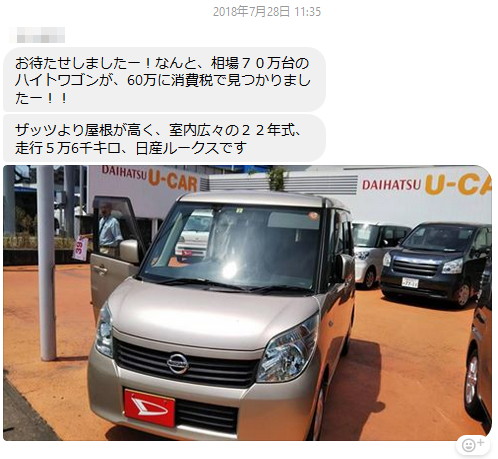 | 第138話 嫁に使って終わり(2018年8月) ご存知の通り私はカネがなくなると働く。 先月マジでなくなった。働かねばならない。 今年は何と言っても四女が生まれた。更に上の娘が三人揃って修学旅行。更に更に古い付き合いの先輩から「捻り板金の使い道を考えて」と頼まれ(第137話参照)やたらカネを使ってしまった。 気付いた時には危険水準。 「働かなきゃ!」 気が乗らないけど長期の出張仕事も請け、何とか危険水準を脱し、幾らか貯金ができた。この貯えはほぼほぼ修学旅行と翌月の支払いで終わる。むろん使っちゃいけない。分かっちゃいるが、この夏は猛烈に暑かったし、嫁子が私一人を置いて埼玉帰省。寂し過ぎて気が狂った。パーッと使いたい気分になった。 「幾らあるのだろう?」 計算すると53万あった。 「よし、鬼のいぬ間に何かデカい買い物をして家族を驚かそう」 静かな居間で、冷凍食品を肴に、一人孤独に呑みながら使い道を考えた。 西洋の鎧はどうか、日本の甲冑がいいか、宴会部屋を増設するか、最初は家族へのインパクト重視だったけれどインパクトにカネ使って半殺しに遭うより自分の欲しいモノがいいと思い始めた。等身大の嫁フィギュア、新しいフライス(金属切削に使う機械)、家族全員分のカラクリ研究所ユニフォーム。 酔った状態で欲しいモノを書き始めると不思議な現象が起こった。だんだん自分のモノはどうでもよくなって家族が欲しいモノ(あくまで父の主観)に寄り始め、四女の観覧車、三女のミュージカル衣装、次女のドラム缶連結カプセル(マンガを読む密閉空間)、長女のHay!Say!JUMPロボ(ビジュアルより面白さ重視)などなど、53万というリアルな予算で家族が喜びそうなモノをビッシリ書き連ねるハメになった。 あれから半月、今そのメモを見ながらこれを書いている。酔った自分が残した記録だから別の自分を見てるみたいで実におもしろい。 欲しいモノリストは28行で打ち止めになり、最後は「嫁用のイカす車」で終わっていた。 嫁はホンダザッツに乗っていた。10年前に中古で買った。まだまだ走りそうだけどエアコンが壊れ、窓も開かなくなり、この夏「殺す気か!」って車に叫んでるのを何度か見た。 埼玉から帰って車が新しくなってたら嫁は泣いて喜ぶだろう。私は黙ってキーを渡すに違いない。嫁は直ぐエアコン効くのを確認するだろう。エアコン効いたら「キャー!うれしー!」って抱き付いてくるかもしれない。そうそう、ピロートークで車が欲しいって何度か言ってたし嫁の好みも知っている。掃除しないから薄い色、座高が高いから天井高め、後は壊れなきゃ何でもいいって言ってた。 「よし決めた!」 酔った体にムチ打って近所の車屋にメールした。夜遅かったのに車屋も即反応してくれた。 要望は伝えた。 伝えて安心した。即座に寝た。そして翌朝驚いた。53万しかないのに「60万まで出せる」と書いてる自分を発見した。酔った男の凄味というか「酒って凄い」と唸った。 とにかくプロにお願いした。 車屋の反応も良かった。さすがプロ。翌日には手頃な車を探し「これはどうだ?」と聞いてきた。 任せると言ったら任せたい。分からない人間が四の五の言ってもしょうがない。 「プロがいいと言うならそれでいい」 即発注した。が、本当にカネがないので消費税は出世払いにしてもらった。こういう小さいところが私が私であるゆえんだろうと思った。 発注後も車屋は車について色々説明してくれた。が、私は車に興味がなかった。 「とにかく今乗ってるザッツを持って行くから嫁子が帰省する日に新しい車をウチの家に停めといて」 それだけお願いした。 この件があって久しぶりに嫁の車に乗った。嫁の車はゴミの嵐だった。ゴミをそのまま渡すわけにはいかないので車内を軽く掃除した。隙間という隙間にゴミがギッチリ詰まっていてポリ袋大では足りなかった。嫁は車に興味がないというより「走るゴミ箱」と勘違いしてるようだった。 カネは即座に払った。払った事でまた危険水準に達し、働く理由を得た。 二週間の帰省を終え、嫁と子が熊本に帰って来た。 空港から家へ向かう車の中、私の心は踊りまくった。 (このサプライズは一回の抱擁じゃ済まんなぁ、何度もギュギュってされたら僕照れちゃう、嬉し過ぎてブチューブチューってやられた日にゃ怒っちゃうかもー) 「やめろー!子供が見てるぞー!なんちゃってー!」 ニヤニヤしてたら家に着いた。知らない車が家の前に停めてあった。 「何この車ー?」 一呼吸置いて優しく応えた。 「たぶんお前の新しい車だ」 「えっ嘘でしょ!」 「キーはクーラーボックスに入ってる、はず」 三女がクーラーボックスへ走りキーを持ってきた。 「何これ?」 キーだけど鍵がなかった。黒い樹脂の塊だった。 「どうやってエンジンかけんの?」 「知らん、運転席のボタンを押すんじゃ?」 嫁は黙って押した。電気は点くけどエンジンがかからなかった。 「えーどうすりゃいいの?」 「知らん」 こんなはずじ