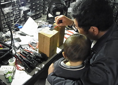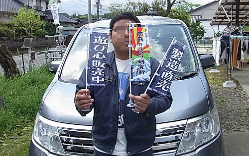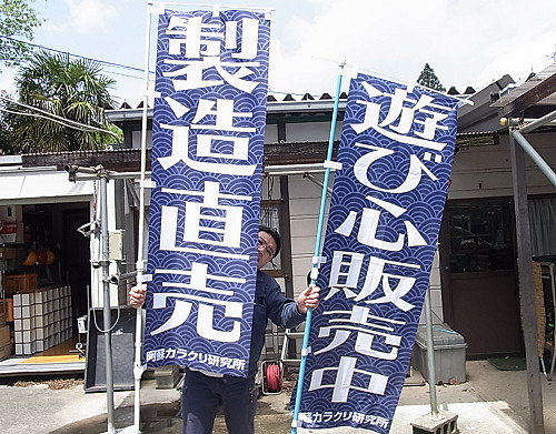 | 第144話 行商のまねごと(2019年4月) 何度も書くが僕の憧れは寅さん(男はつらいよ)だ。糸の切れたタコみたい(おいちゃんの言葉)にふらふらふらふら生きてみたい。が、僕は寅さんと違って独身じゃないし、子供は4人もいるし、作業場ないと今の仕事も成り立たない。ないない尽くしで憧れは遠くなる一方、行商なんて夢のまた夢と思ってたけど、ふとチャンスを得た。 フリフリLEDという振って文字を浮かべるオモチャを得た。これをたくさん作って呑み屋と駅で振ったら100本ぐらいアッという間になくなった。1000円で作って1000円で売り、半分くらいタダで配ったから100%赤字だけどマジで気分がよかった。 思えば阿蘇カラクリ研究所を始めて12年経つけど「その場で売れるモノ」を持った試しがなかった。名刺の裏にも「商品ない」と書いてるし、社歌も「商品ない」と歌ってた。 「うわー商品持っちゃったー」 まだ試作品だけど四捨五入したら商品ぽいモノを持ってしまった。併せて巨大なジュラルミンケースをたまたま客に貰った。 「いやーん、憧れがすぐそこに来てるー」 やっちゃいけないと分かっているけどフリフリLEDを寅さんケースにギッシリ並べてみた。 「カ・イ・カ・ン・・・」 もう止まらない。行商のまねごとをすると決め、作業着と同じ色でのぼりを2本作った。 「展示会とか狭い所で売るには大き過ぎるね」 専属デザイナーのくまみね氏と話してたら「小さいのぼりもある」そう。「お金の問題もあるからいずれ作ろう」って話してたら勝手に作って押し売りされた。 行商は一人だから絶対寂しい。寅さんにはポン州がいる。水戸のご老公には助さん格さんがいる。僕に相棒ないけれど動く看板ぐらい欲しい。 振るタイプの看板を車のワイパーで作った。 次に回すタイプの看板を在庫のモーターで作った。 これで少し賑やかになった。 「よーし!」 もうどうにも止まらない。完全に気分が乗ってしまった。 「次は売る物を作らなきゃ!」 フリフリLEDは一日26本しか作れない。夜なべを繰り返し在庫100本作った。 作りながら商品一つじゃ寂しいって思った。顔が大きくなる板(小)も20枚作った。 「売れなくてもいい、これは本業じゃないから使ったぶんだけ稼ぎゃいい」 最初はそう思ってたけど使ったぶんがどんどん膨らむから気付けば冗談事じゃ済まない領域に達してしまった。 もう売れなくていいなんて言わない。言えない。これは寅さんのまね、行商のまねだけど、どうせまねするならちゃんと真剣にまねしたい。 大好きなシーンがある。甥っ子のミツオに鉛筆を売るシーン。今どき誰も使わぬ鉛筆を言葉巧みに寅さんが売る。その話術に皆が驚く。これを寅さんは「のっぴきならねぇところから絞り出した知恵」と言った。 「今夜この品物を売らないと腹すかせて野宿しなきゃならねぇ、のっぴきならねぇところから絞り出した知恵みてぇなもんなんだよ」 「そう!僕もそういう知恵が欲しい!」 本気でまねして「知識」じゃなく「生きてく知恵」が欲しい。 例えば片道分だけ交通費を持って「帰りはこれを売らなきゃ帰れない」という「のっぴきならねぇ状況」に自らを追い込む。ポヤポヤしてちゃダメだ。どうせ憧れに手を付けるなら「のっぴきならねぇ状況」もまねしたい。 久しぶりにワクワクが止まらん。「これぞ遊びだ」って叫びながら準備してる。 |