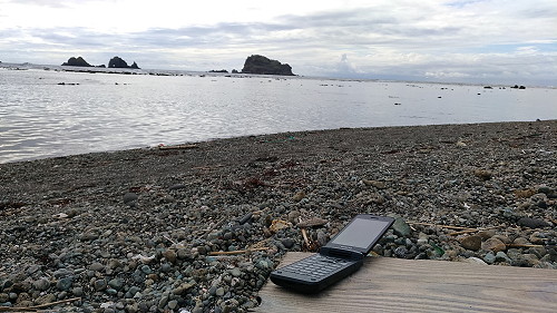 | 第160話 酒田飛島出張報告3(2024年12月) [三日目] 三日目は雨だった。 雨なのに9時集合、現地へ行って昨日の話のつづき、連絡船の歓迎システム、その現地調査をやると言う。 「本気か?」 昨日も思ったけど今朝も思った。どうやら本気のようだ。全員車に乗せられた。 で、島の中枢とびしまマリンプラザへ行き「ここにこういうロボットがあったら楽しいんじゃないか」構想会議が始まった。 言い出しっぺの僕はとりあえずロボットの事を具体的に喋る。オシャレ夫婦はそれを聞いてああだこうだと興奮する。顧問と役所の若者は眠そうに写真を撮る。仙台の青年は二日酔いで一切喋らずウロウロしてる。 仕事っぽい時間と言えば唯一この時間だけど、1時間ぐらいワイワイ話して宿へ戻った。 宿に着くと雨が本降りになった。 本来なら今日から東北大学の一団が合流する運びになってたらしい。が、その一団は船が出ず今回の合宿は不参加となった。 これくらいの雨で船が出ないのかと思ったけど船は雨や雪というより風で欠航になる。で、寒くなるほどその確率は上がり、真冬は1週間足止めとかあるらしい。 雨は止まない。部屋でゴロゴロした。 我々の他にも退屈してる人がいた。郵便局の二人組だ。今日帰る予定だったけど船が出ず旅館へチェックイン。廊下の休憩所で話をされてたから島の話を聞いて暇を潰そうと思った。が、職場も一緒の二人ゆえ特に話もないらしい。向こうがシーンとしたらコッチの心もシーンとし、つい朝寝してしまった。 1時間ぐらい寝た。昼になってた。顧問から昼飯行くかと電話があったけど動いてないから全く腹が減ってなかった。その事を伝えると顧問も同感だと言った。 雨は13時15分に上がったと手帳に書いてる。具体的な時間を書くぐらい嬉しかったのだろう。メンバーも嬉しかったに違いない。皆一斉に旅館を出、散策を始めた。 僕は浜伝いに島をぐるり歩こうと思った。 「この海岸は徒歩で行けますか?」 昨日J女史に聞いたら2ヵ所は行けないと言われたけど1ヵ所「分からない」と言われた。分からないなら行ってみたい。 北のミヤダ浜という所から西海岸をグルリ回って宿へ戻るという道を選択した。 ミヤダ浜へ行く途中メンバー全員に会った。みんな無料のレンタル自転車に乗ってた。バカだなぁと思った。自転車で冒険の自由を失ってた。みんな坂を登りたくないから坂の上に自転車置いて浜へ出てた。 「自転車取りに戻らんといかんやん」 僕は浜伝いに冒険へ出、自転車乗りは自転車に縛られ浜に出ちゃ山へ戻るを繰り返した。 干潮なら行けるかもと言われた海岸は1回波を浴びただけですんなり行けた。 それにしても外洋の波は凄い。飽く事なく島を削ってる。ガリガリガリガリ地球の突起物をただただ削り、地球ものっぺらぼうにさせまいと新たな突起物を作り続ける。 「これも一つのムダじゃないか」 僕のやってる事を嫁も子も仕事をくれる客でさえムダの2文字でバカにするけどムダこそネイチャー。何だか地球に肯定された気がした。 もう一つ「最高」と唸ったのが携帯。 この島の海岸は南と東に人がいて北と西は人がいない。いなけりゃ電波を飛ばす必要もなく浜へ出た瞬間アンテナゼロ。 手帳の記録に「携帯入らず最高、浜で昼寝する」と書いてる。 雨の旅館で寝るし、散策の浜でも寝るし、結局この日は寝て過ごした。 さあ夜だ。 最終日の夜はBBQだそう。 J女史の夫が料理人で横文字のBBQソースがズラリと並び、何を食ったか忘れたけど夢中で食った事だけ記憶してる。 申し訳ないが出張報告1と2は20日以内に書いたけど、この3は110日後に書いてる。理由は簡単。書くのに飽きてしまったからで手帳に残してない事は記憶が薄い。 よってこの晩の事を何と書き残したか、それを清書し宴会の話は終わりにしたい。 役所の長が呑む前に釣りしてた。全く釣れてなかった。 その長が離島勤務でいい事は釣りが上手になる事だと語った。なのに今日釣果がない事を島の誰もが突っ込まなかった。島における絶大な権力を見た。 顧問は今日も一人だけサッサと9時に寝た。 青ヶ島のKちゃんは製塩所の娘だそうで青ヶ島の塩を貰った。お礼に何かあげたいけどムーミン以外興味ないと言うからあげるものがなかった。 そのKちゃん、島の水道を管理してるらしく、島の名産を作りたいと言ってたから「炭酸入れてKちゃんサイダーで売ったら」と冗談で言ったらオシャレ夫婦が喰い付いてビックリした。オシャレ夫婦何でも喰い付く。 沖縄のスナックでよく見る南国風のママがいて「出身沖縄ですか?」と聞いたら「地元です」と返された。ゴメンナサイと謝った。 島サミットってのがあって日本の離島から人が集まる。その会場で一番盛り上がる話は「佐渡は島じゃない、大陸だ」我々にはよく分からぬが離島あるあるだそう。 まだ起きてる0歳児がいて「11時だ!0歳児は寝る時間です!」そういう理由で呑み会が終わった。誰も逆らえない最強の理由だった。 以上