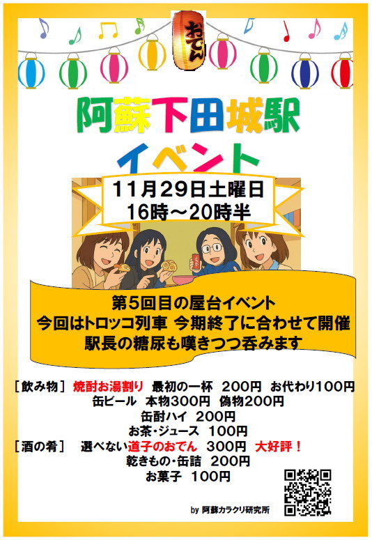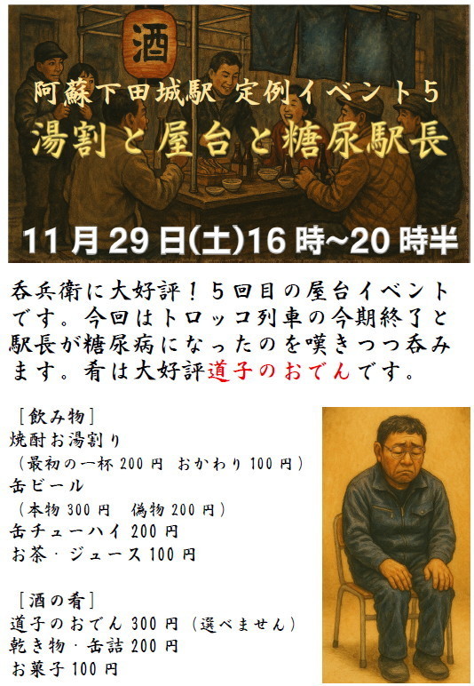 | 第163話 公と私(2025年11月) 公私混同を社是としている。だって公はおもしろくない。 駅の管理人になって2年。イベントは延べ4回やった。イベントに関しては色んな公金があるから使えと人は言うけど使うと動きが悪くなるし勝手気ままができなくなる。が、前回4回目の時、客の言葉になるほどって唸った。 「駅でやる以上は地域のイベントだけん公だ、集落の皆に分かるよう紙を回して告知せんといかんだろ」 告知はインターネットでしかやってなかった。確かに見ない人には届かず、地域やお年寄りからコソコソやってると思われるのは嫌だ。 そういう訳で今回はビラを回覧板で回してもらうよう区長にお願いした。すると地域から苦情が出た。 「カラクリ研究所の私的イベントをなぜ回覧板で回さにゃならんのか?」 板挟みの区長も困り僕も困った。駅のイベントは公なのか私なのか?悪い事に今回のビラは顧問の作で今回だけ「by 阿蘇カラクリ研究所」と書いてあった。確かに見る人から見れば駅のイベントではなくカラクリ研究所のイベントだ。この会社は社是が公私混同だから誰がどう見ても私、ていうか福山裕教=阿蘇カラクリ研究所だ。 とりあえず区長に迷惑かけるのは嫌だから次から回さないと決めたけど公のイベントだとすれば情報が回らないのはよくない。 「どうしたらいいですかね?」 「うーん」 全世帯にビラを入れて回ろうかと思ったけど200軒ぐらいある。このイベントは保健所への申請代2800円すら賄えない大赤字。これ以上手間がかかるなら止めてしまいたいのが本音。が、年3回を楽しみにしてくれてる人もいて、年3回だから、それぐらいは期待に応えたい。 とりあえず一番苦手な公を理解すべく公のプロ・役場職員にどういう流れが一番ベターか聞いた。 まず駅の活性化委員会を作り個人ではなく団体にするそう。実際に動くのは個人かもしれないけど行政や地域としては個人を支援するのはタブー。私から脱皮し、よく分からぬポヤッとした存在になり行政に支援される事で公は輝きを増す。 「とにかくアンタは私が強過ぎる!」 ビラのダメ出しも受けた。 「阿蘇カラクリ研究所って書いちゃってるのもダメだけど、それよりダメは糖尿病云々のくだり!これはまずい!」 「えーおもしろくない?」 「おもしろい!おもしろいけど公はおもしろくしちゃダメ!主催者の病気をイベントにするなんて公では絶対許されない!」 「でもねぇ」 「分かる!そうやって20年続いた会社だもんね!分かるけど公ってそういうもんなの!」 イベントなんてやんなきゃよかったと思ったけどやったから日頃考えない事を考えた。そして公のプロも口角泡を飛ばしながら公の基礎を分からず屋に叩き込もうとしてくれてる。 「とりあえずイベントをやめるという選択肢はナシ!今後も細々やってくれ!」 社是が公私混同はイベントに向かない、その事を勉強した。 |