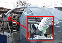 | 〜2017年12月23日〜 転がってたシロッコファンを使って排煙設備を作りました。今度は「音がうるさい」と言われました。 |