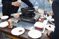 | 〜2018年1月21日〜 囲炉裏部屋で鍋会もなかなか盛り上がる事が分かりました。嫁曰く「排気しないから寒くない、そして何より臭くないのがいい」そうです。 |