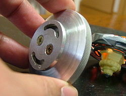 | (66)アルミ削り出しベイブレード ベイブレードというコマが爆発的に流行っているそうです。長女も持ってたので、戯れに近所の子供と戦ったらコテンパンに負けました。悔しいので図面を描き、アルミの丸棒から削り出しました。 試作品を色々作って近所の子供をギャフンと言わせたいと思います。 |