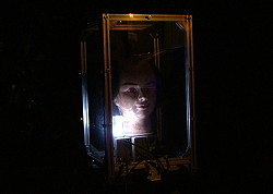 | (54)警戒ロボ「N.TAIYO」 ホームセンターで売ってるセンサーライトを改造し、防犯ロボットを作ってみました。友人に似ている古臭いマネキンがクルクル回って警戒します。 通りがかった猫にも反応しますので獣対策にも利用できそうです。 |