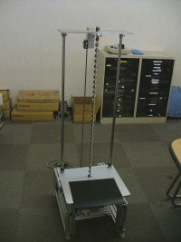 | (15)縦型試験機「エコリフター」 NEJI-RIN(F社製)の縦型試作機です。極めて負荷が軽い送りネジですので小さいモーターで上下搬送が可能です。 モーターの回転方向は固定。 下りはモーター切って自然落下。 精度が要らない簡単制御のリフターに最高です。上での停止困難なのが欠点です。 |