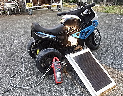 (437)乗用遊具用の太陽光充電器 バッテリー式の乗用遊具が出先で充電切れになりました。これはいかんという事で太陽光充電器を作りました。1時間充電したら15分乗れるので水源遊びに最高です。水遊び、寒い、乗用遊具、暑い、水遊び、寒い、乗用遊具、暑い。これぞ夏の無限ループです。 |