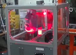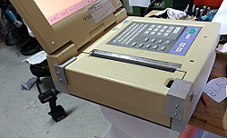 (436)粘性食品切断マシンの試作 ベチャベチャ引っ付いてどうしようもない食品を定寸切断する実験機です。下に手を入れたらセンサが反応しカッターを振り回す仕組みなのですが、お客様、調整しようと切断部に手を入れ6針縫う大ケガをしたそうです。だいぶ経った今も殺人マシンと呼ばれているらしく、お役御免になってからも安全啓蒙マシンとして飾ってあるそう。で、今回そのマシンをプロの写真家に撮ってもらったらしく当て付けとして写真が送られてきました。何度も言うけど僕は悪くないです。 |