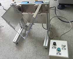 (441)軽鉄円柱固定台 10kgある軽鉄の円柱をお好きな突き出し量で固定するという実験用器具です。「一人で扱えるよう軽くして」と言われたのでアルミの板金で作りました。 「書類は後回し!とにかく急いで作れー!」 仕様書とかなしに現場で言われたモノをダーッと作る、そういう仕事が得意です。試作屋ですもの。 |