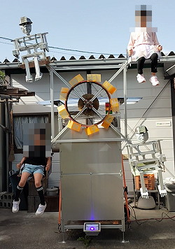 (484)親子ドキドキ観覧車 四女に遊んでもらおうと400日前に気合を入れて作りました。で、400日経ってやっと一緒に乗ってくれる友達を連れてきました。 この観覧車は四女が友達と一緒に乗ってるところを製作事例の写真にしようと決めてました。そういう訳で製作事例に載る事なく放置され、四女も小学生になり、もうやがて体重制限(25キロ)で乗れなくなります。これは一体何だったのか、ハッキリ言ってムダの極みですが思い出深い製作物で弊社のランドマークです。 たぶん最初で最後、友達と一緒に乗った動画はこちらをご覧下さい。 |