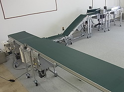(450)展示用ベルトコンベア制御 食品機械メーカーのショールームに設置するベルトコンベア制御です。前が詰まってたら定位置で待つ、ホッパーでピッチを整える、その他ジミな動きをします。ショールームだから光ったり喋ったりさせたいけどそういうのはいらないそうです。 動画はこちらをご覧下さい。 |