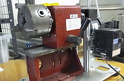 (405)チャック部のみ旋盤 色々作ってると掴んで回してヤスリかけたい作業が出ます。が、ボール盤のチャックは小さいのしか掴めません。仕方がないので壊れた旋盤を切断。モーターとインバーターを付け回転部のみの旋盤を作りました。年に一度しか使わないのにまた余計なモノを作りました。 |