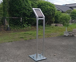 (486)専用タブレットスタンド 受付用のタブレットスタンドです。見るだけじゃなく画面を押す必要があるとの事で角度を付けました。 一口にタブレットと言ってもメチャクチャ種類があるらしく現物借りて仕上げました。 「これ用のこういうの作って」 一点物の什器、承ります。 |