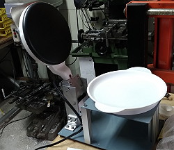 (503)量産用手動クレープ焼き機 市販の焼き機をホールドし毎回同じ位置に手動で落とすという機械です。1000枚焼くなら完全自動がいいけれど自動機は場所を食うし高額。300枚以下なら半手動がいいんじゃないという事で作りました。4台あれば1時間で200枚くらい焼けそうです。みんな色々考える。考える人は楽しそうで偉い。 |