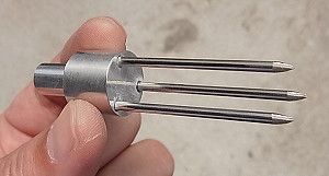 | しまちゃんWのユーザー様は値段に厳しく、色々と改造指示を頂きます。 「アレとコレがいらんから安くして!」 あれよあれよと部品が削られ、ついに裸になりました。もはや「皮むき機」と名乗る事すらおこがましく「皮むきモーター」と呼ばせて頂きます。 しまちゃんWと違うところは以下です。 @ベースが華奢になりました(10mmアングル→3mm曲げ板金) Aカップリングがクランプ固定からネジ固定になりました B安全用トグルスイッチを撤去しました いっその事モーターも外国製にしようと思ったのですが、そこが一番大事だそうで、国産(オリエンタルモーター)のままです。安全用トグルスイッチは「気を付けるからいらん!」という事で撤去しました。カップリングは交換性に配慮してクランプ式でしたが「針を外す事がない!」とのご指摘で割安のネジ式に変更しました。 以上、ユーザー様の指摘を加味し、2800円のコストダウンを実現しました。 【特徴・仕様】 基本的にしまちゃんWと変わりません。上の違いを加味し、しまちゃんWの特徴・仕様・動画をご覧下さい。 【販売に関して】 K2:本体回転部 K2-1:減速比1/9 値段:27200円(税別・送料別) 回転数:138[回転/分](50Hz地域) 166[回転/分](60Hz地域) K2-2:減速比1/12.5 値段:27200円(税別・送料別) 回転数:100[回転/分](50Hz地域) 120[回転/分](60Hz地域) *回転部に関する補足 回転部には針が付いてません。初めてのお客様は針とセットで購入下さい。もしくは針の部分を自作下さい。カップリングとの取り付け軸はΦ10g6(長さ16mm程度)がピッタリです。 ピーラーは付属しません。お気に入りのピーラーで剥いて下さい。 カップリングの締め付け用に2mmの六角レンチが必要です。別途お買い求め下さい。 果実の径が大きい場合や果実の形状が歪なものは1/12.5をオススメします。 H1-1:回転2本針(Φ16) 土台径:Φ16mm 針径:Φ2.5mm 針の飛び出し:凡そ40mm 値段:2500円(税別・送料別) H1-2:回転3本針(Φ18) 土台径:Φ18mm 針径:Φ2.5mm 針の飛び出し:凡そ40mm 値段:2900円(税別・送料別) H2-1:回転4本針(Φ25) 土台径:Φ25mm 針径:Φ3mm 針の飛び出し:凡そ50mm 値段:4500円(税別・送料別) *回転針に関する補足 果実の種類・状態・剥き方は千差万別ですので針の選定は致しません。 一般的に硬い果実には2本針(H1-1)、普通は3本針(H1-2)が良いようです。 大きめの4本針(H2-1)は巨大な果実を剥く現場に使ってもらいました。 針の数や長さが増すほどガッシリ固定できますが、その反面、抜く作業が大変です。お客様のジャストフィットを模索下さい。 【発注方法と納期】 在庫がある場合、入金確認後3日以内にお出しできます。在庫がない場合、入金確認後、凡そ14日間お時間頂きます。 まずはメールでお問い合わせ下さい。早ければその日に、遅くとも翌日までに振込先と金額を提示致します。 【注意事項】 果肉がジュクジュクだと刃圧に耐えられず脱落してしまいます。針の形状は一般的な硬さに合わせて設計しています。柔らかい果実は剥けません。 返品不可の商品です。発注前に十分検討下さい。 ピーラーは付属しません。お客様にジャストフィットのピーラーを探して下さい。 オーダーメイドも可能ですが別途設計費が発生します。左利き仕様への変更も可能です。ご相談下さい。 ご使用の際は、針でケガをしないよう、じゅうぶんご注意下さい。 モーターは防水仕様ではありません。掃除の際は電用品を濡らさぬよう注意して下さい。また電源プラグを必ず抜いて下さい。 掃除後の乾燥は日陰で行ってください。 カップリングのネジは締め過ぎないように御注意下さい。また磨耗した工具や100円ショップの工具で締めるとネジ山が破損する場合があります。 スイッチ部分が濡れた状態で操作すると感電します。フットスイッチを濡らさないで下さい。 |