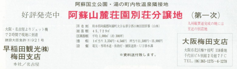 昭和47年時の別荘地販売価格、坪12000円。荘園別荘という名前がいい。名家が喜びそうな匂いがある。