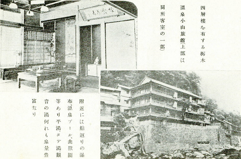 栃木温泉・小山旅館。今も栃木集落にある。立野ダム建設計画で少し上に登った。 |