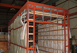 | 2011年8月21日 「フレームの溶接が終わった」と連絡を受けたのでチョイと見に行く。嫁、大興奮。 「思ったより広いー!」 その後、文句の嵐。 「家の中には全くカネ使わないのに、こういうのばっかりカネ使って、もー腹たつー!」 進むNSPに嫁もだんだん熱くなる。 |