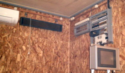 | 2011年9月23日 新型ジュークボックスの制御盤が完成。今回は魅せる制御盤を意識して電用品を丸出しに。 操作盤は10型の中古タッチパネル(ボックス付)を前勤務先から購入。 エアコン取り付けも本日完了。 これからソフト作成に着手。完成形はどうなる事やら? 作者も分からん。 |