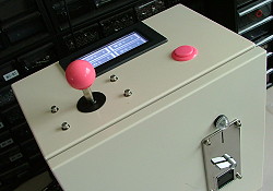 | 2011年5月31日 コイン投入部+操作部が完成。ジョイスティックで歌を選び押しボタンで決定する。 表示部はタッチパネル。現場でも演出設定や出力確認ができるようソフトを作り込む予定。これからが大変。苦手な作業が続く。 |