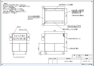 | 2011年7月25日 二つのプレハブ業者に見積もりをお願いしているが、震災の影響で回答が遅い。品不足で部材の価格が出ないらしい。急ぐ話じゃないのでいいっちゃいいのだが、せっかちな身には辛い。 右は図面。テーブルの配置などを検討中。 |