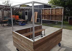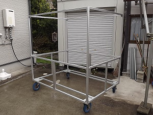 | 2014年4月27日 嫁がいないうちに骨組だけ作った。部品の半分は中古、半分は新品。 屋根が欲しいけど、そこは予算と搬送の問題から完成後の宿題とした。 隠れて作りたかったが巨大なのですぐにバレた。 |