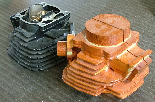 滅多にお目にかかれない「シリンダヘッド」の木型を展示! この道40年の型職人による「型を語る日」も設けています! |