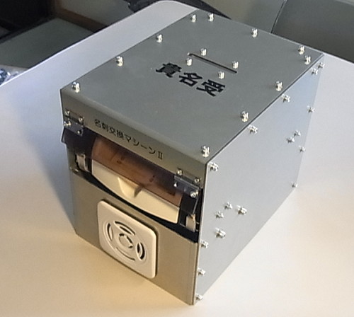 僕は展示会とかお祭りが大好きですが、同じ事を何度も説明したり、名刺交換ばかりやってるとマジでぐったり疲れます。せっかく知らない場所で知らない人と出会うんだから繰り返し作業は機械にまかせ、もっとバカ話や知らない話でパーッと楽しく盛り上がりたい。そう、繰り返し作業で疲れたくないのです。 「分かるー!」という方は以下をご覧ください。分からない方は読んでも時間のムダだから読まないで下さい。 「何度も同じことを説明したくないからマシン組み込み用の動画再生基板を作りました!」 あると思って探したけど世の中になかったので作りました。接点入力を与えると指定の動画を再生する基板です。 基板の仕様はこちらのマニュアルをご覧下さい。せっかく作ったのでネットショップで販売します。 尚、基板単体で使える自信はないけれど「そういうマシンが欲しかった」という方がいらっしゃいましたら装置丸ごと弊社にご依頼下さい。動画とギミックを同期させたり、ムダにギラギラ光らせるのは弊社の得意技です。 むろん押して再生だけの静かな構成でも承ります。 作るモノが普通な場合、恥ずかしそうにご依頼下さい。 「ひっきりなしの名刺交換はマジで疲れるから名刺交換マシーンを作りました!」 名刺交換は1時間に50回を超えると自分が何のために生きてるのか分からなくなります。無意識夢想で紙の往復を繰り返し、少しだけ交わす無味無臭の挨拶も右から左へだだ流れ。終わった後は大量の紙が残りますが誰が誰だか分かりません。 「こういう作業はマシンに任せたい!」 試しにデカいのを作ってメーカーフェア東京2014に出展したら700枚もの名刺(ゴミも含む)を勝手に集めてくれました。 これの動画はこちらをご覧ください。 次に、デカいのが熊本地震で壊れたので小さい版の名刺交換マシーンも作りました。 これの動画はこちらをご覧ください。 前作はムダの塊だったので、これぐらいがちょうどいい姿だと思いますが、これはこれでインパクトに欠けるのかメーカーフェア東京2016では300枚しか名刺を集めませんでした。が、300枚を自分で集めようと思ったら気が遠くなる労働で、サイズの割には実によく働きます。 それにこのマシンは理系を呼びます。我々みたいなメーカーは理系の人物と会いたがってますが理系は文系より圧倒的に人見知り、よほど嗜好に合致しないと寄り付きません。が、このマシンが集めた名刺を分析するに、なんと7割が理系、何度実験しても理系優位です。 結論です。 「理系の名刺交換は人がやるより無人のマシン、そして何より僕が楽」 是非お試し下さい。 |